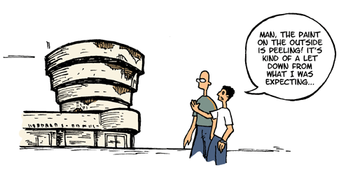 Aaah, the Guggenheim at last. I'll let Meng explain why there aren't any external photos of the museum. Most of the floors there were closed off, as they were installing a new exhibit at the time. This was probably a good thing, otherwise we might've spent the entire day there (and thus cutting back on the other things to do in the city).